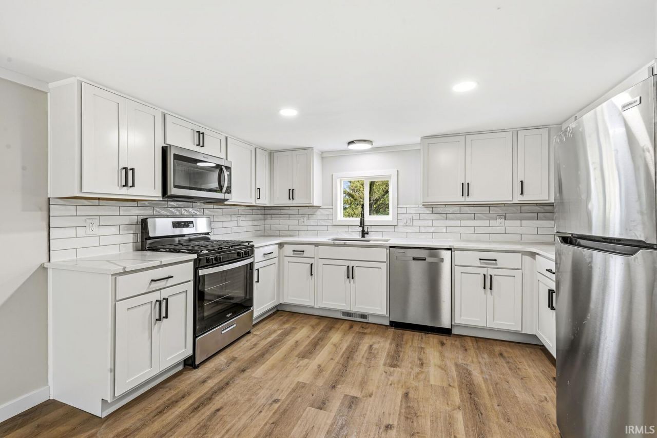 OPEN HOUSE 4/25/26 12:30-1:30 PM. Welcome home to this spacious 4-bedroom, 2 full bath property offering a bright, open-concept layout perfect for everyday living and entertaining. The kitchen and living area flow seamlessly together, featuring stylish white cabinetry, quartz countertops, tile finishes, and new appliances for a clean, modern feel. Enjoy durable LVP flooring throughout the main living spaces, with cozy carpet in the bedrooms. Both bathrooms are updated with tile finishes, adding a fresh and polished touch. Major updates include new HVAC, new plumbing, and most windows recently replaced, providing peace of mind for years to come. The finished basement adds valuable additional living space, complete with a painted ceiling and carpeted floors, plus the convenience of laundry hookups both in the basement and on the main level. Outside, you'll find a detached oversized 1-car garage, offering plenty of room for tools and toys. A great opportunity to own a move-in ready home with modern updates and functional space throughout!